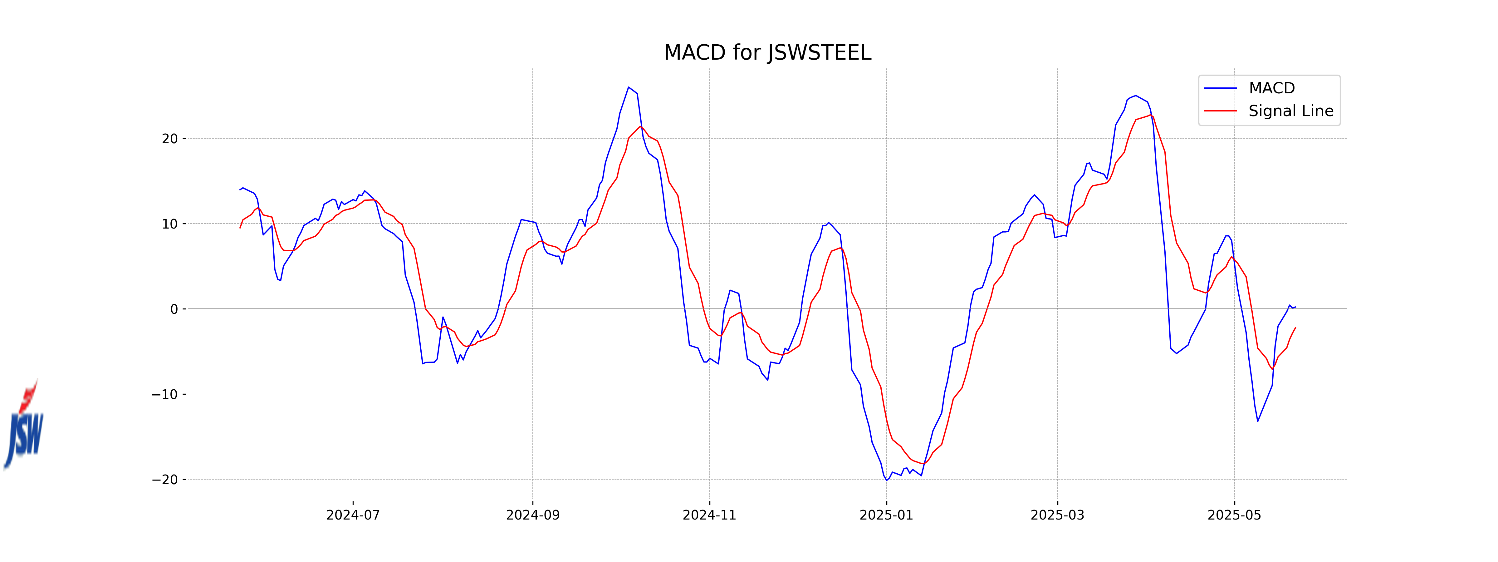 The MACD value for JSW Steel is 0.1944, which is above the MACD Signal of -2.2448. This suggests a potential bullish momentum as the MACD line has crossed over the signal line, indicating a possible upward price movement in the stock. However, as with any technical analysis, it is advisable to consider other indicators and market conditions before making any investment decisions.