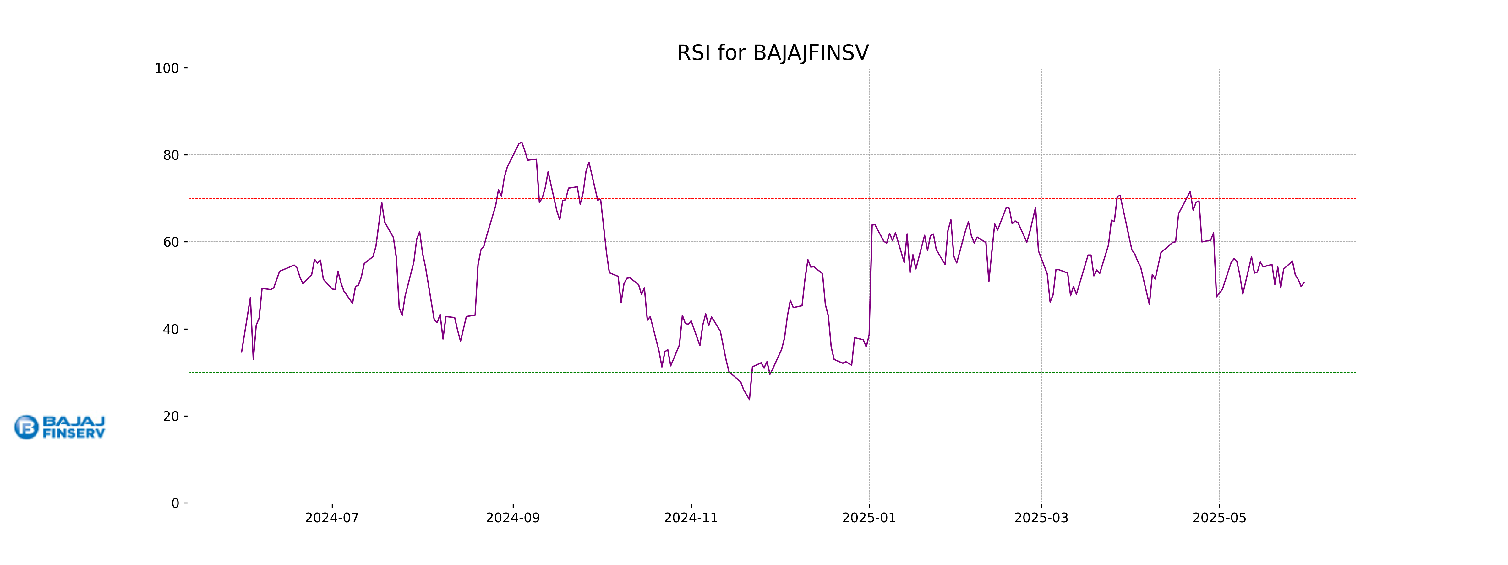 The RSI (Relative Strength Index) for Bajaj Finserv is 50.67, which suggests neutral momentum in the stock, indicating it is neither overbought nor oversold at the current price level. This level can suggest potential consolidation or a lack of strong directional movement.