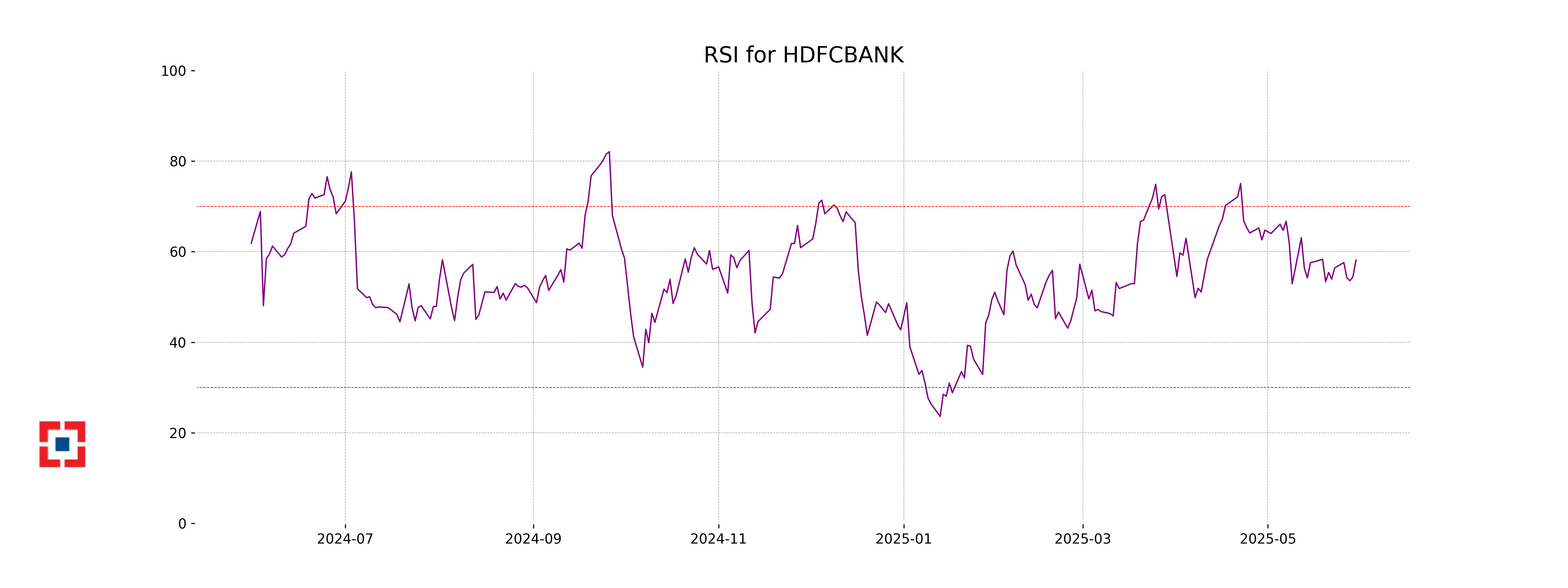 The Relative Strength Index (RSI) for HDFC Bank is currently at 58.13, which is below the overbought threshold of 70. This suggests that the stock is in a neutral zone, not indicating significant overbought or oversold conditions. It implies a balanced buying and selling pressure in the market.