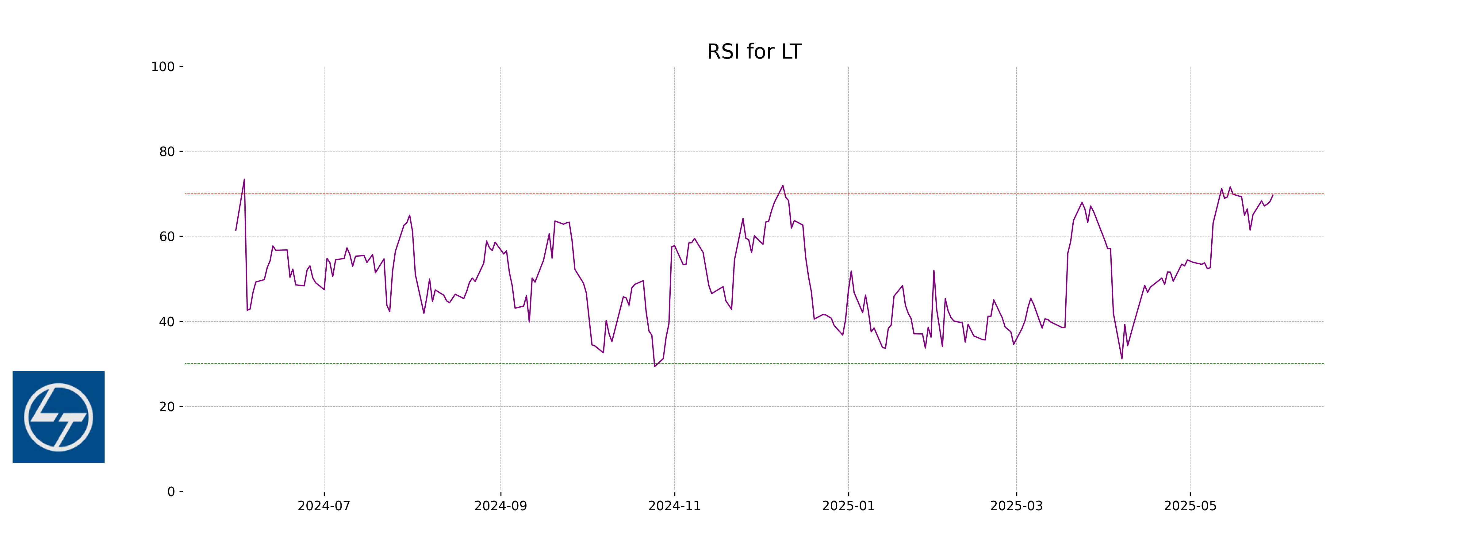 HCL Technologies exhibits an RSI of 69.67, indicating that the stock is approaching overbought conditions, as RSI values above 70 typically suggest. It may experience a slowdown if buying pressure decreases.