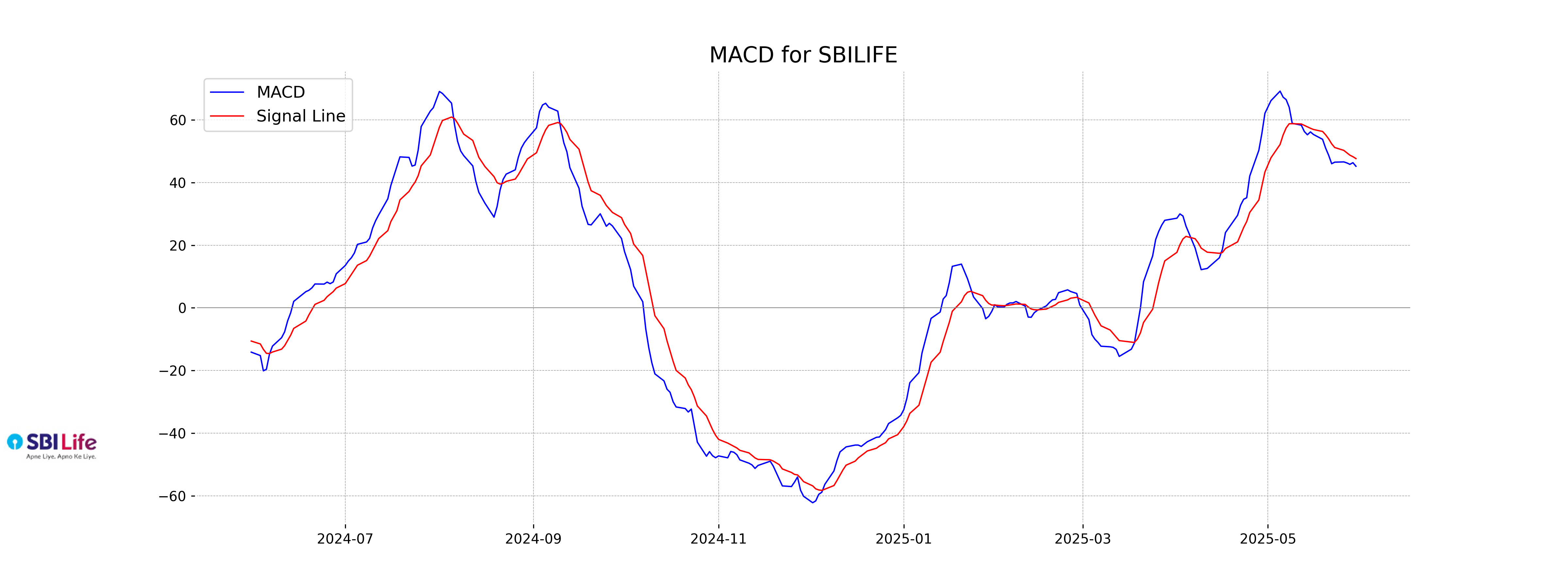MACD Analysis for SBI Life: The MACD value of 45.18 is below the MACD Signal line value of 47.63, indicating a potential bearish crossover. This suggests that the stock might experience downward momentum in the short term.