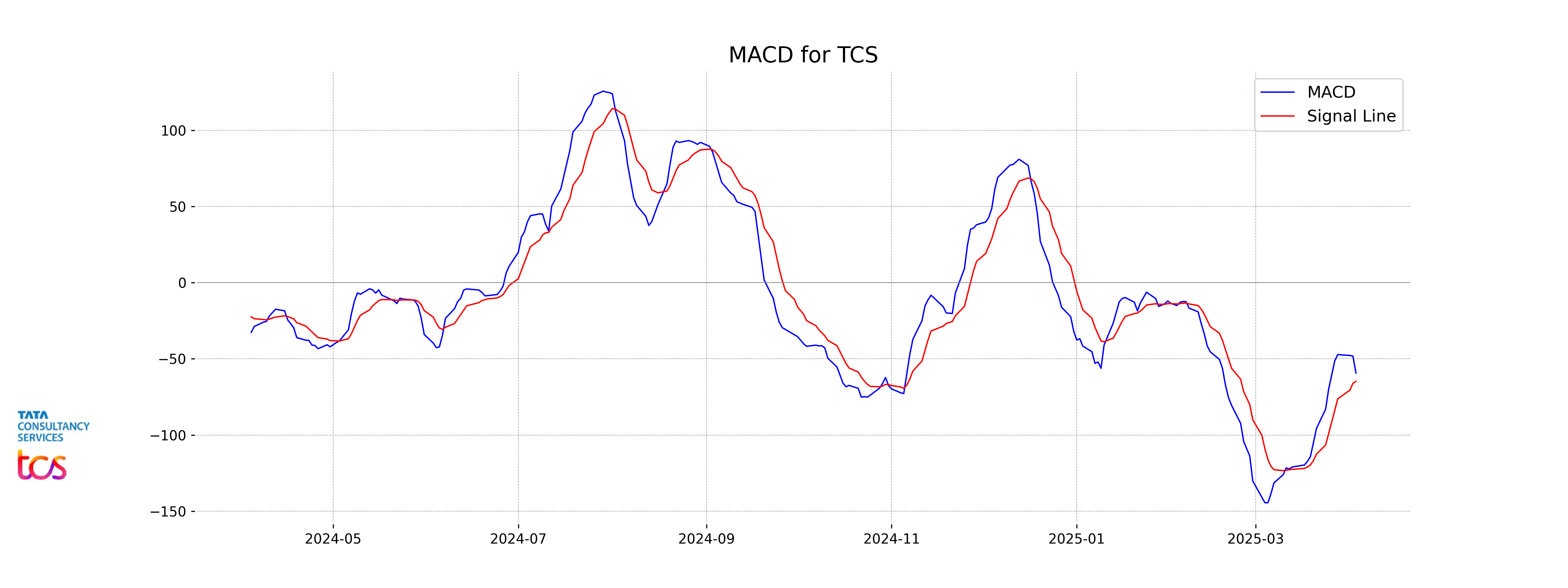 TCS exhibits a negative MACD value of -59.29, which is below the MACD Signal line at -64.74. This suggests that the stock is currently in a bearish trend, indicating potential downward pressure on its price.