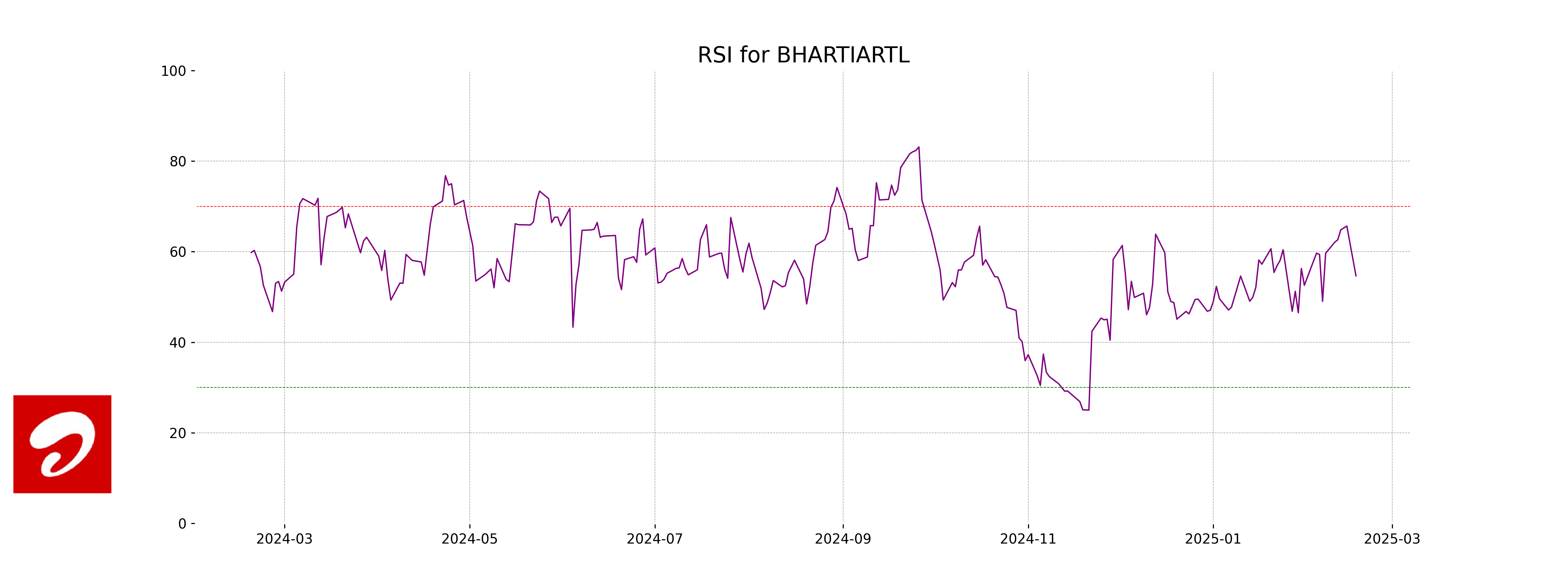 The RSI (Relative Strength Index) for Bharti Airtel is 54.66. This indicates a neutral market sentiment as the RSI value is close to 50, suggesting that the stock is neither overbought nor oversold at this point. Investors may look for further market signals before making trading decisions.