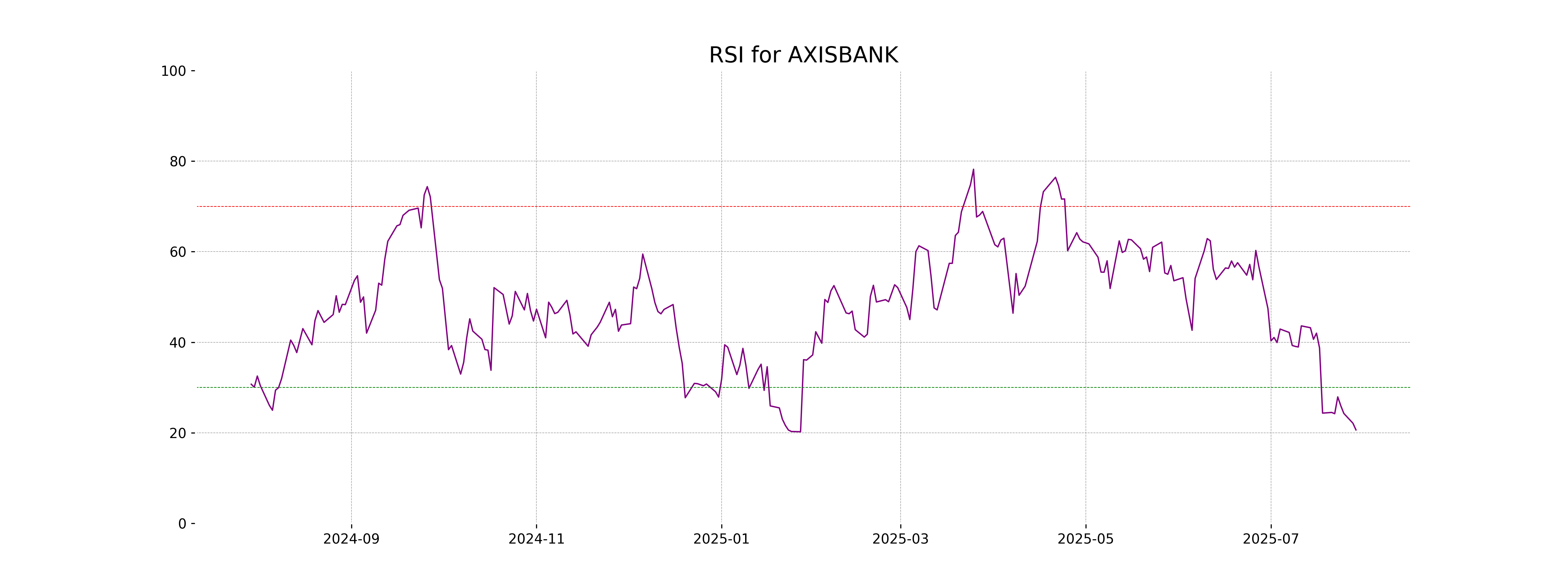 Axis Bank's RSI (Relative Strength Index) is at 20.63, indicating that the stock is in the oversold territory. This suggests a potential buying opportunity, as it may indicate that the stock has been under significant selling pressure.