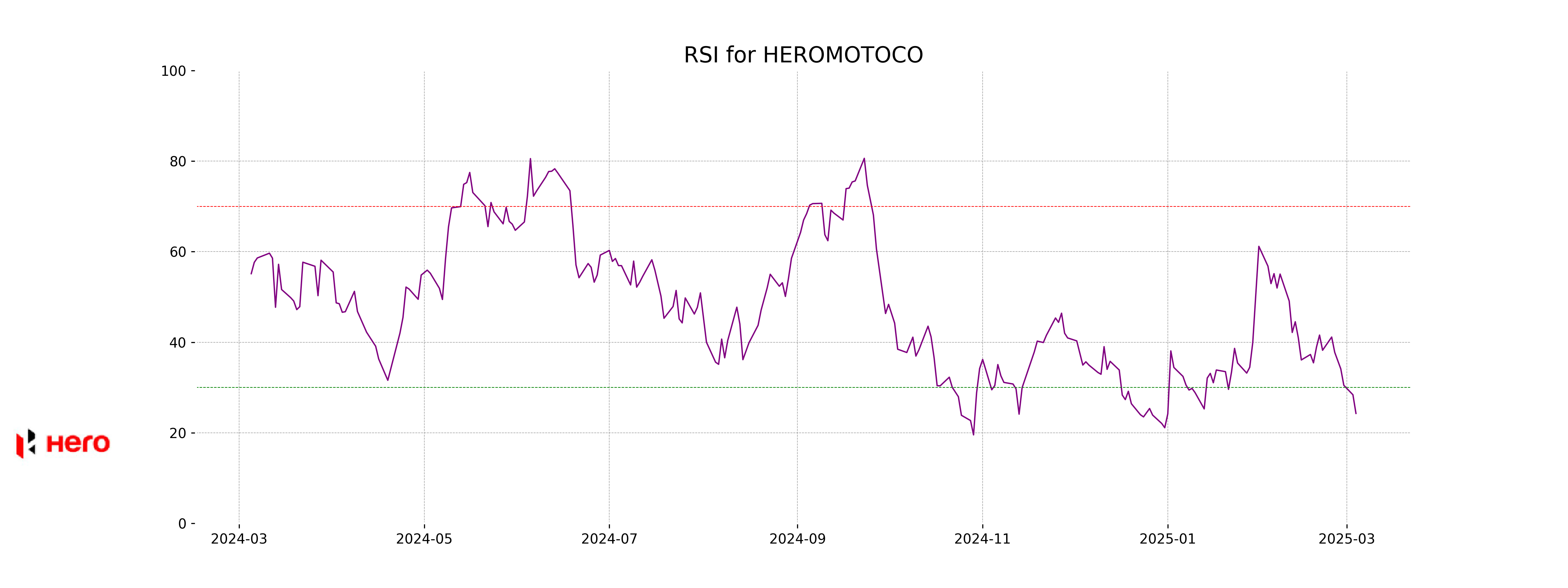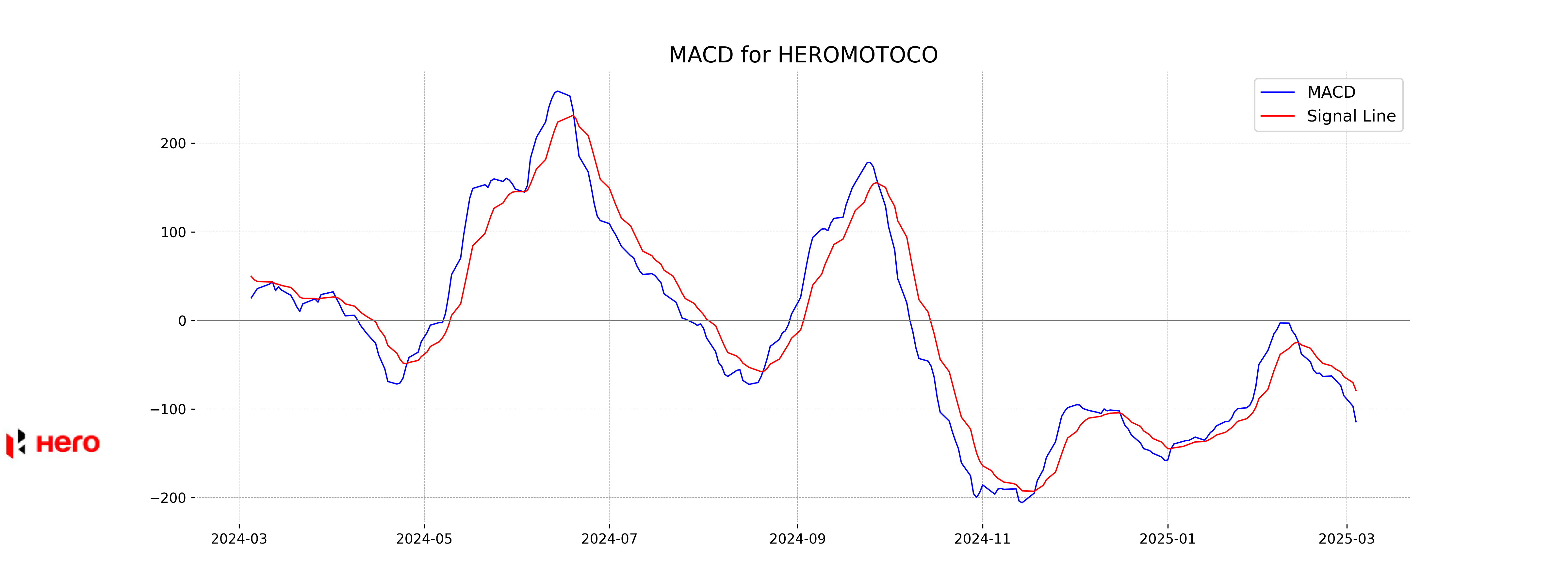 Hero MotoCorp's RSI is 24.27, which indicates that the stock is in the oversold territory. This suggests that the stock may experience a potential price reversal or a bounce back if buyers step in. However, it is important to corroborate RSI analysis with other technical indicators before making any investment decisions.