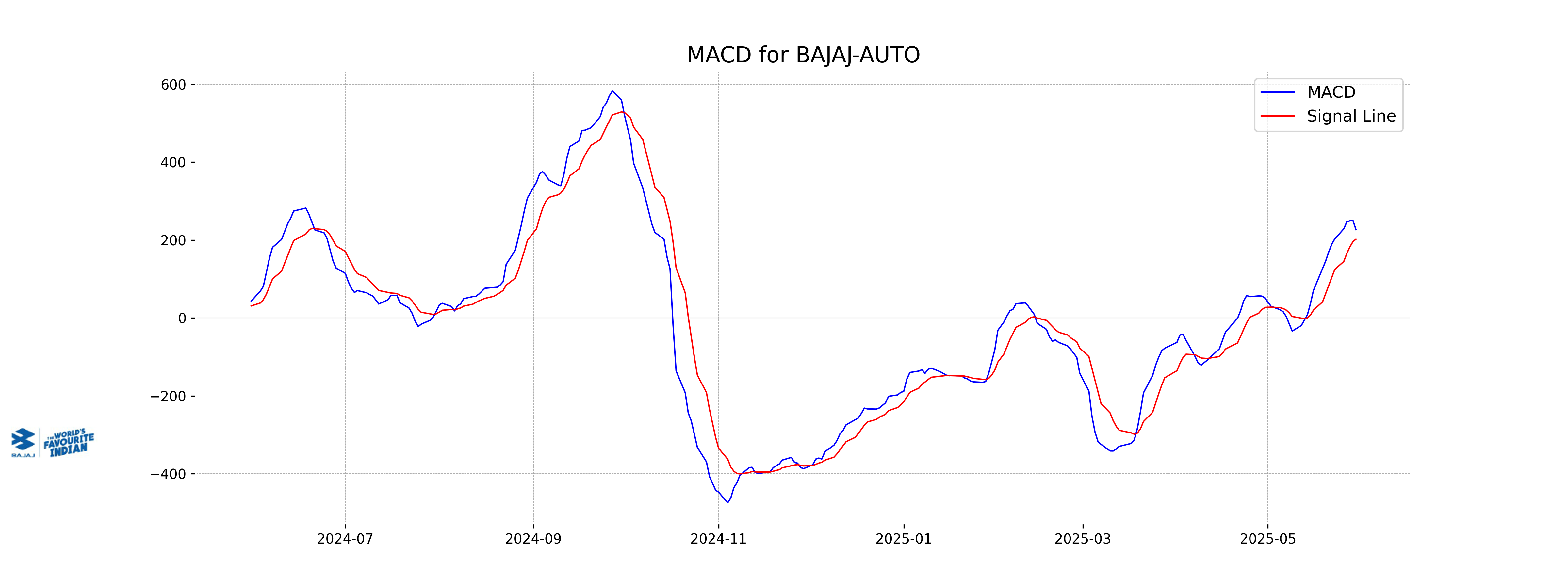 Bajaj Auto's MACD value is 226.95, which is above its MACD Signal line at 202.08, indicating positive momentum and a potential uptrend in the stock price. However, given the recent price drop, caution is advised as market sentiment can change.