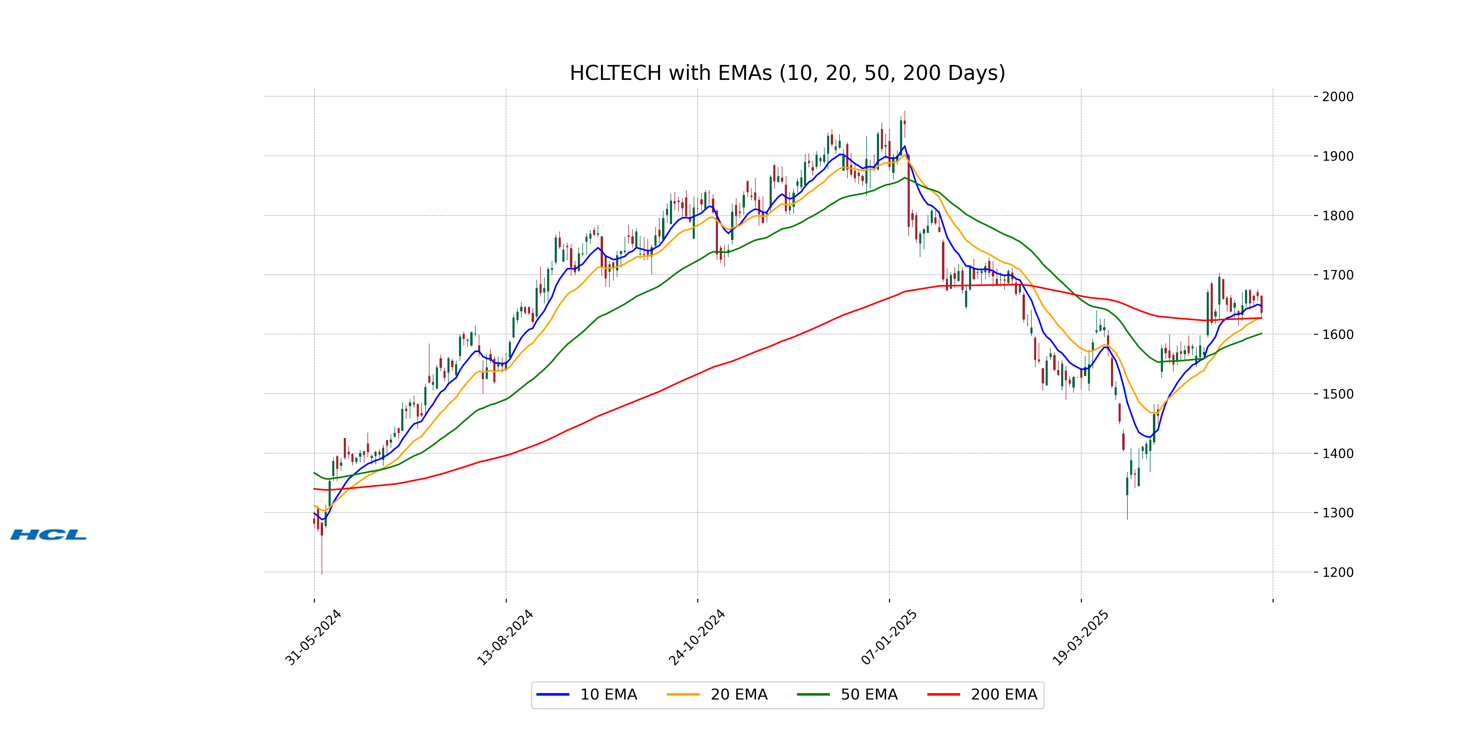 HCL Technologies' current stock price is below its 10-day EMA of 1647.65 and slightly above its 50-day EMA of 1601.21, indicating short-term weakness but longer-term stability above the 200-day EMA of 1627.25. The recent closing price of 1636.60 suggests it is trading close to the 200-day EMA level.