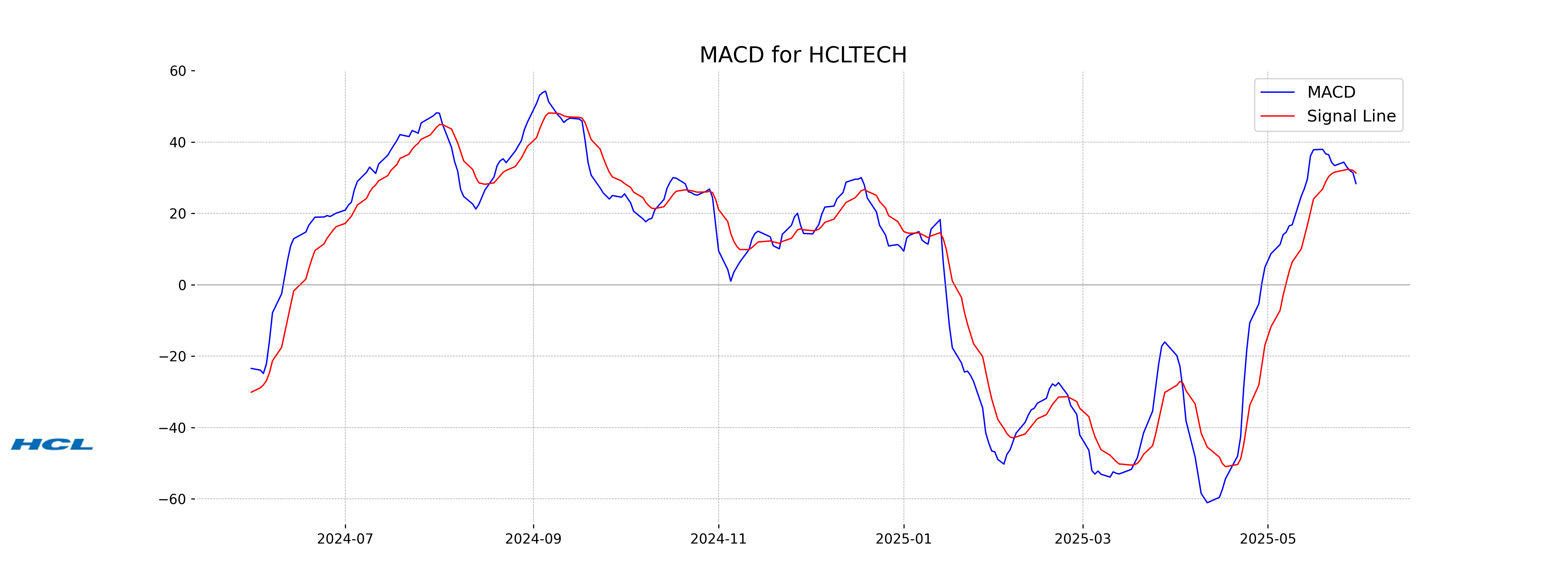The MACD analysis for HCL Technologies shows that the MACD value is lower than the MACD Signal, which could indicate a potential bearish trend. Traders may interpret this as a signal to watch for further weakness unless the MACD value crosses above the Signal line.