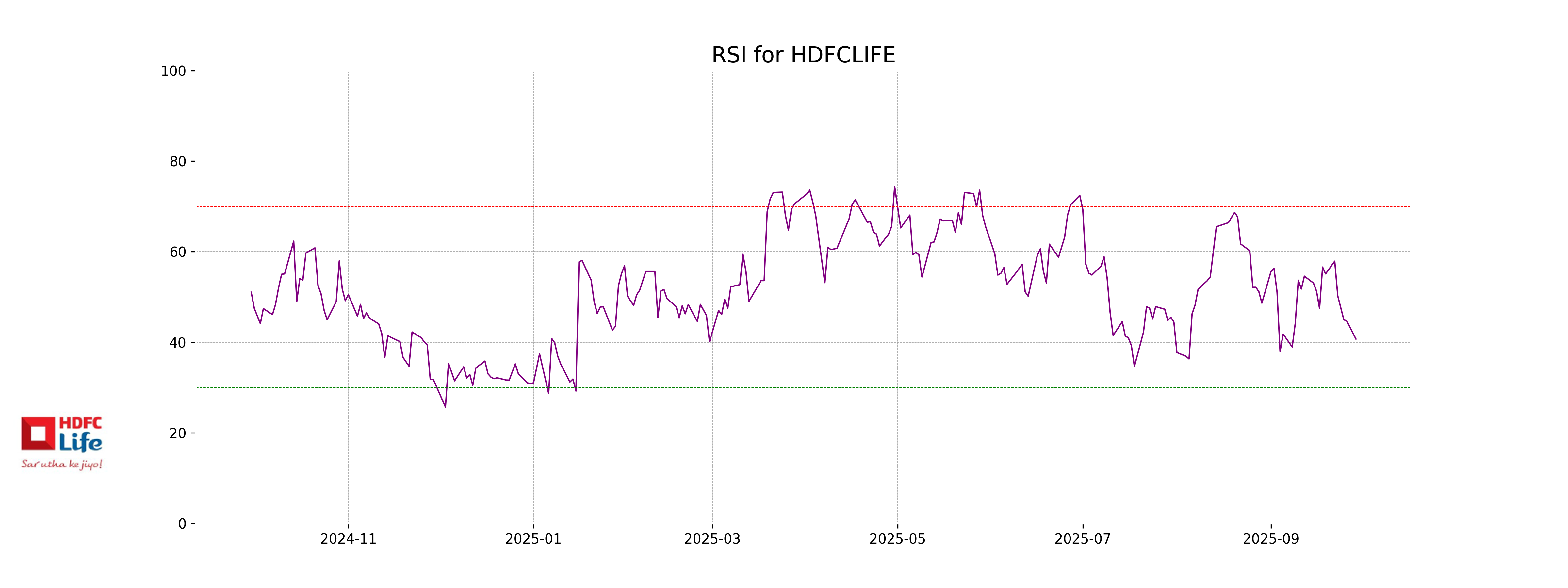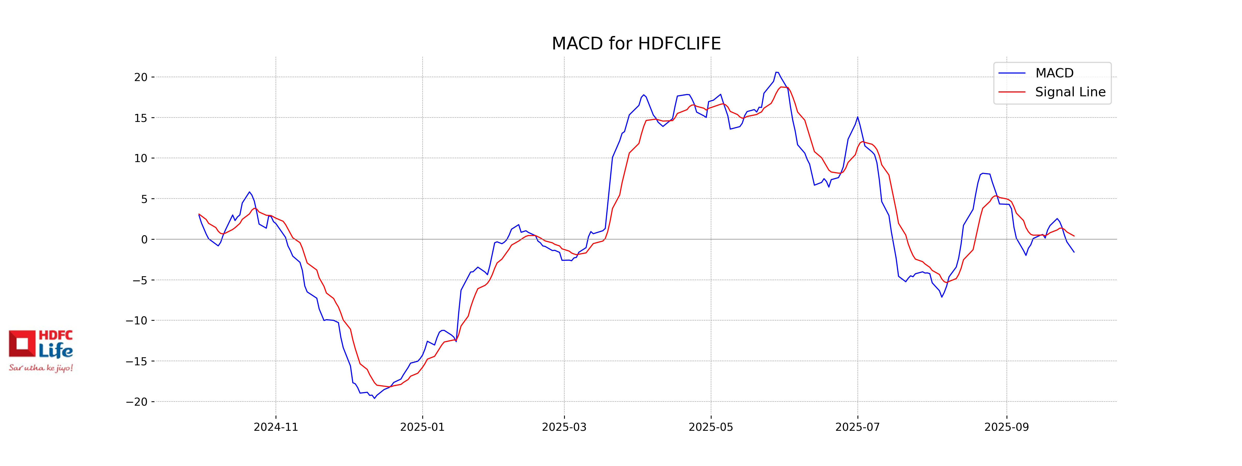 The RSI (Relative Strength Index) for HDFC Life is 40.70, which indicates that the stock is nearing the oversold territory, typically below 30. This suggests that while the stock has been experiencing selling pressure, it may potentially face a change in momentum if it moves lower, warranting closer observation for possible upside movement.