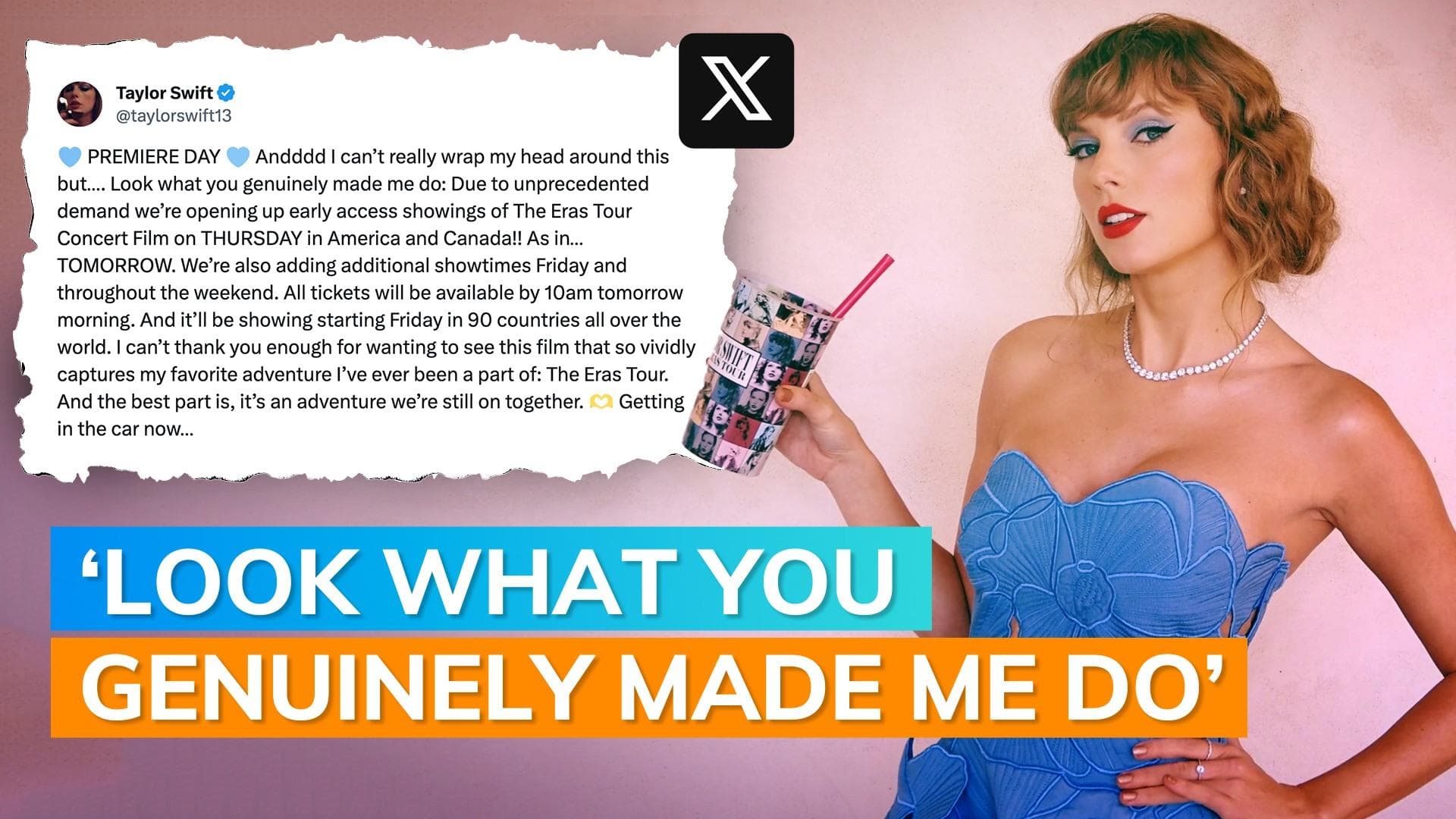 Taylor Swift’s Eras Tour concert film premieres in US and Canada cinemas a day earlier amid high demand
