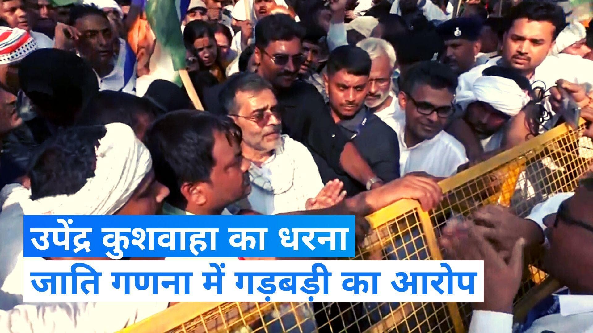 Bihar News: पटना में धरने पर बैठ गए उपेन्द्र कुशवाहा, जाति गणना में गड़बड़ी का लगाया आरोप