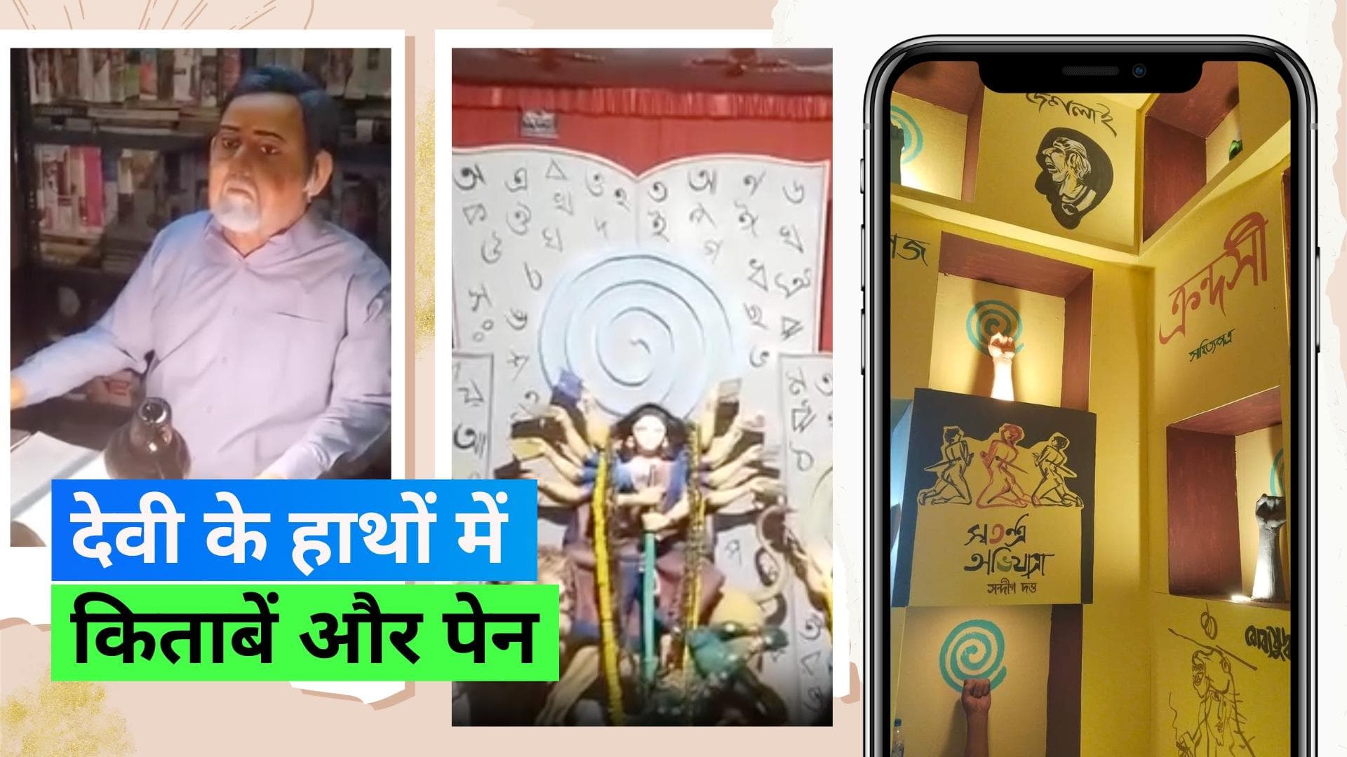 Durga Puja 2023: लाइब्रेरी की तरह बनाया गया पंडाल, मां के हाथ में त्रिशूल की जगह है किताबें