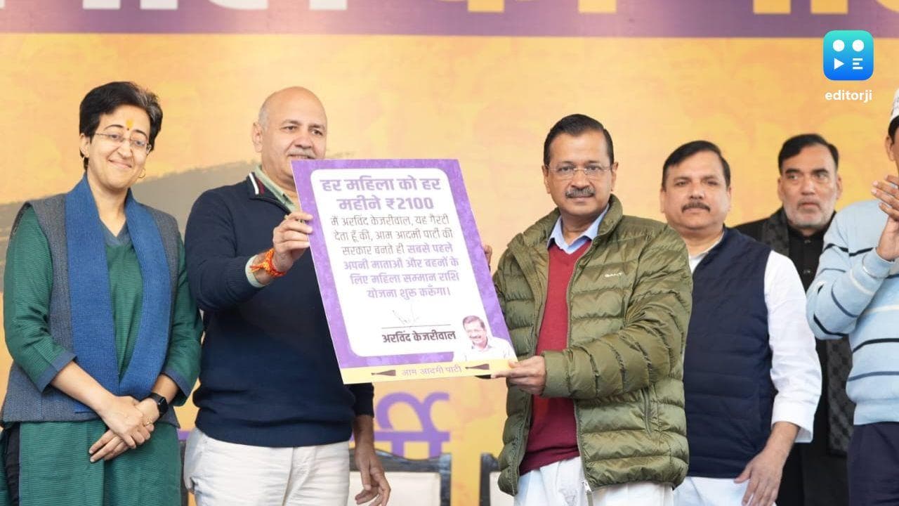 His second guarantee, the Mahila Samman Yojana, promised Rs 2,100 per month to every woman in Delhi. "The second guarantee is the Mahila Samman Yojana, under which every woman in the national capital will receive Rs 2,100 in her bank account every month. We will implement as soon as the government is formed," Kejriwal affirmed.