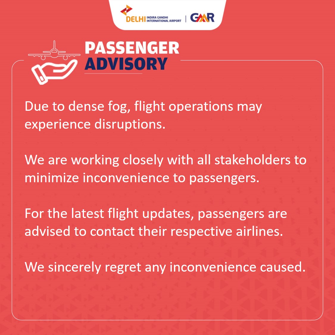 “Due to dense fog, flight operations may experience disruptions. We are working closely with all stakeholders to minimize inconvenience to passengers. For the latest flight updates, passengers are advised to contact their respective airlines. We sincerely regret any inconvenience caused,” the advisory stated.