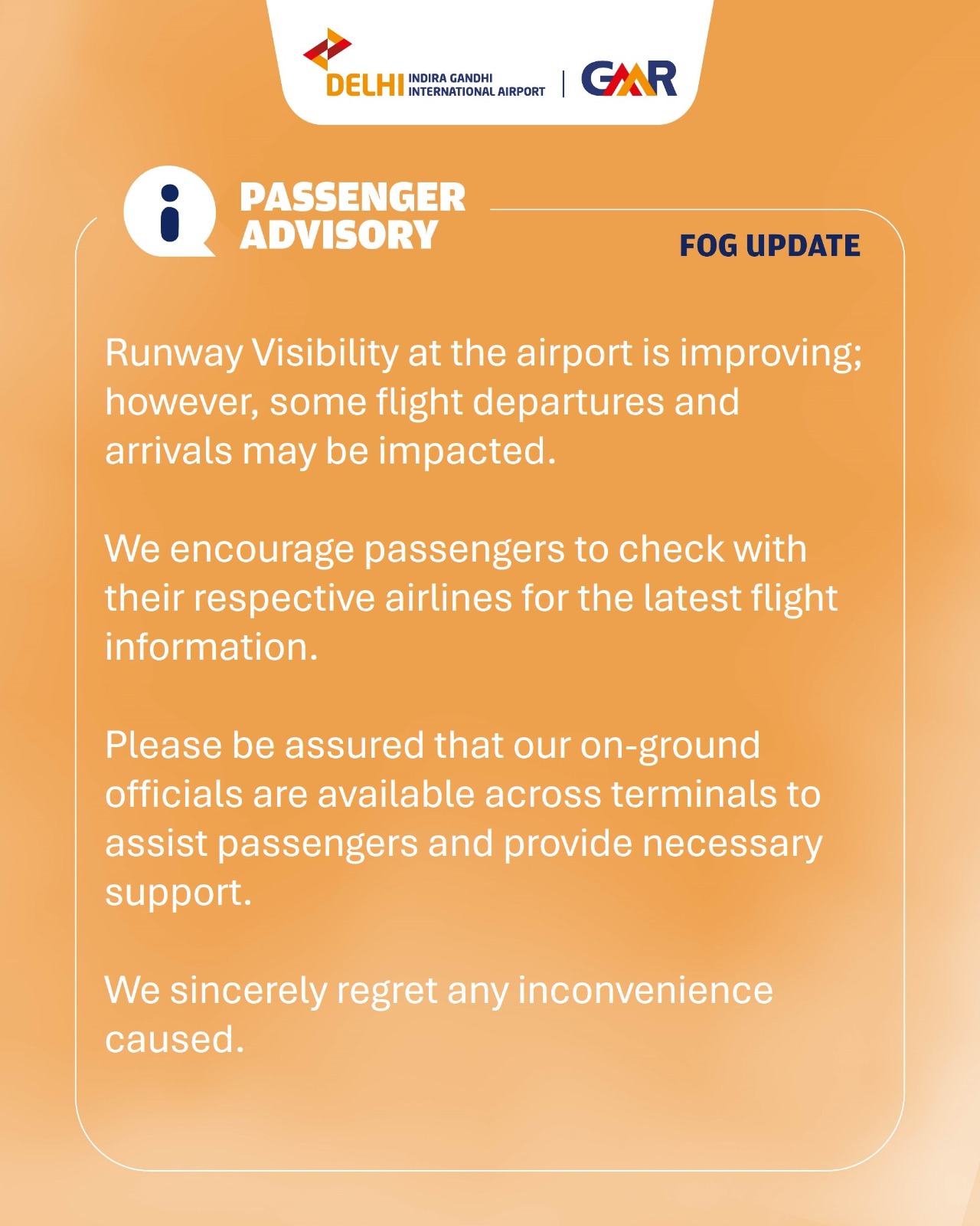Over 270 flights delayed, 10 cancelled at Delhi airport