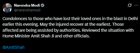 PM Modi takes stock of situation after blast near Red Fort, speaks to Amit Shah