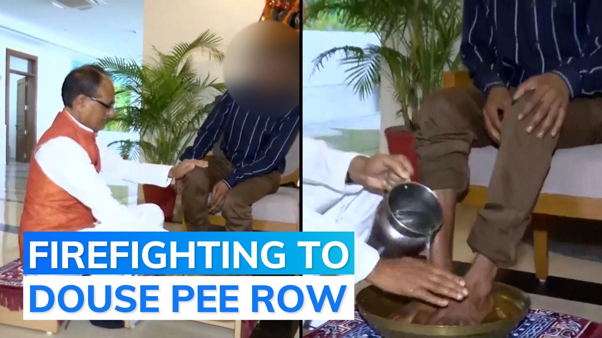 Video: In poll-bound MP, CM Chouhan washes feet of urination incident Tribal victim