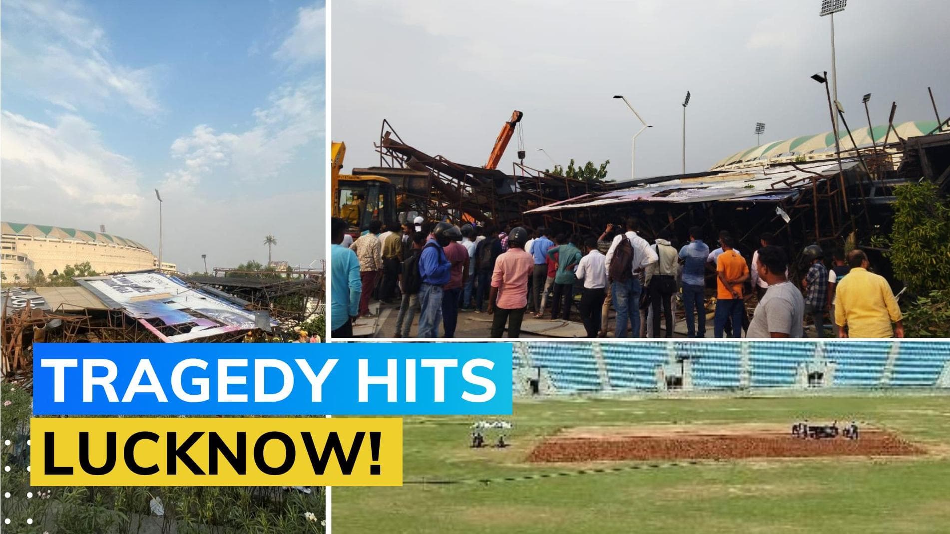 Watch! Huge signboard falls over vehicle in Lucknow's Ekana Stadium, 2 dead