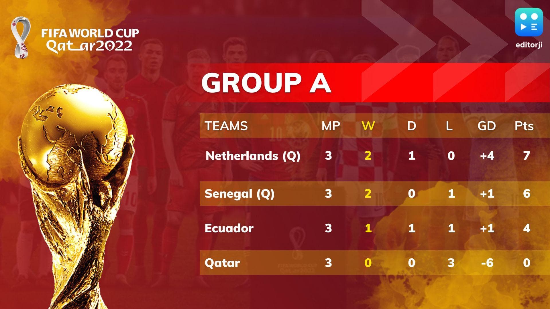 FIFA World Cup 2022 Group A Standings: Netherlands and Ecuador level on 4 points