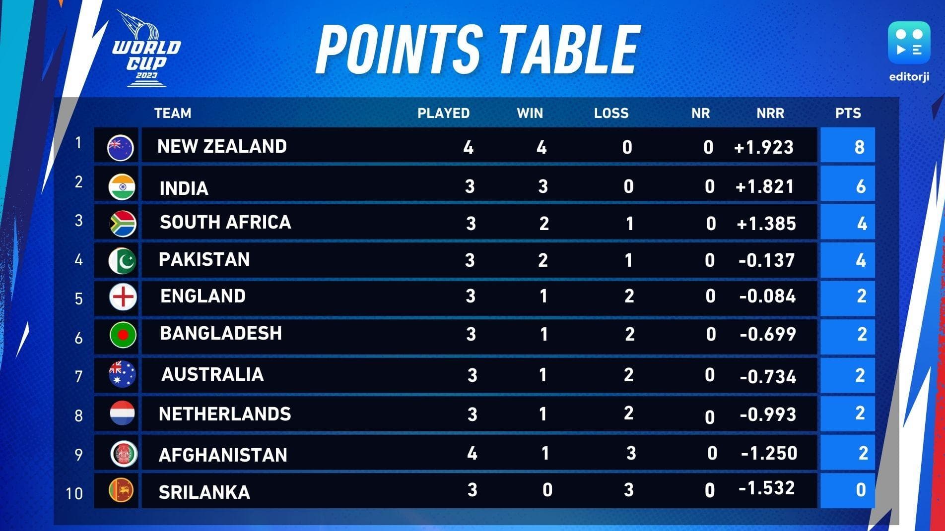 ICC World Cup 2023 points table: New Zealand continue to impress with fourth straight win | NZ vs AFG